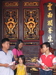 Monsieur and I had booked a car to take us to the airport just after lunch, so we had the morning to see a bit more of Melaka. Off we went down the street in search of shoes for foot-bound women. We went to the address given in the guide but the shop was boarded up. We then popped into a large shop with aisles of offerings to help one’s prayers at the Buddhist temple – fake money in bundles, cardboard platinum Amex cards, models of Mercedes cars… you name it. Anything that could possibly help you in the after-life was there,and we even got directions to Wah Aik’s new location at 56 Jalan Tokong.