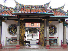Mission accomplished, Monsieur and I now sought out the temples on Jalan Tokong, otherwise known as Temple Street. There were three to visit: Masjid Kampung Kling with a Mecca-green roof sloping like a pagoda’s but quite empty at this time of day; Sri Poyyatha Vinoyagar, with its ochre façade and Hindu statuary, but the one we really enjoyed was the Buddhist temple of Cheng Hoon, or Temple of the Merciful Cloud.