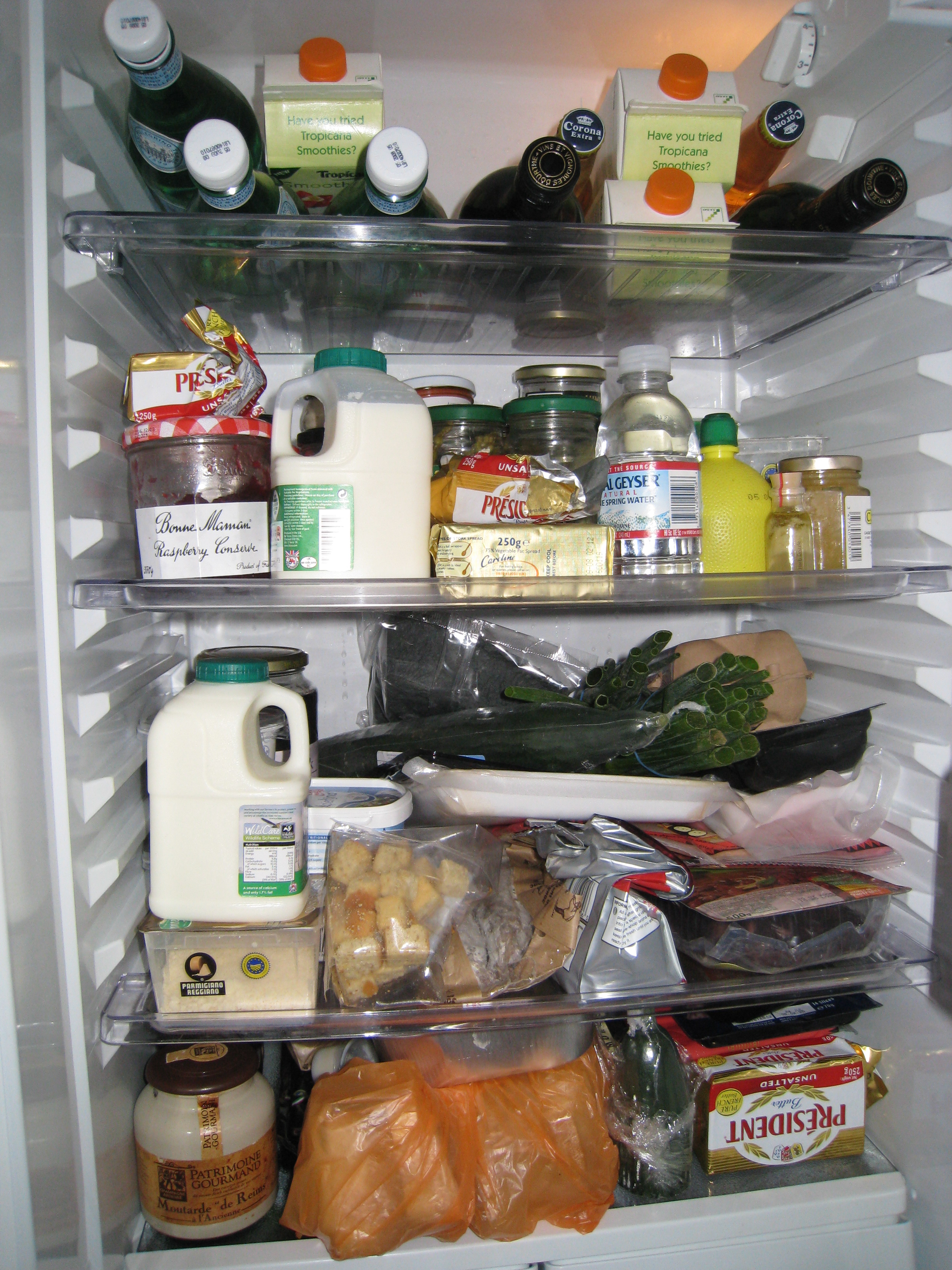 On the top shelf we have orange juice, San Pellegrino (our favourite water), a couple of Coronas for post-work feet-up time and wine. This is NOT a tee-total flat, as is immediately obvious.