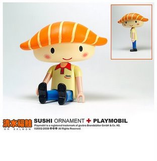 My brother and I grew up with Playmobil – little people who came in theme sets, from the Wild West with forts, cowboys and Indians, hospitals with operating theatres and ambulances. Today, Playmobil is still going strong, but I don’t think the German manufacturers will be able to get their heads around this little number. (In case you don’t get it, that thing on Mr Playmobil’s head is supposed to be salmon sushi.)