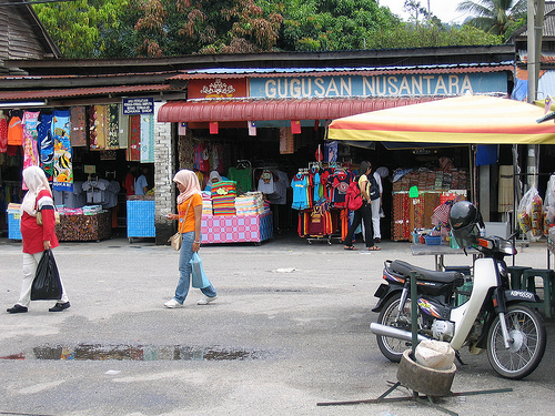 The driver then took us the Atma Alam Batik Village, where we saw the batik process in its various stages (batik is a method of decorating material by using hot wax outlines which remain white when dye is painted over them). The adjacent shop was filled with batik paintings, shirts (which were so splashy that Monsieur shied away instantly), scarves and sarong-style skirts with matching tops. I bought a few pretty headbands and some hand-made paper notebooks as gifts, but the disappointment of the staff that we weren’t Big Spenders was palpable, in spite of their smiles.