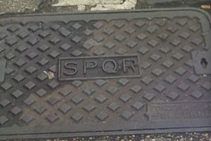 The Manhole Mission also made me think of the manholes in Rome, which are emblazoned with SPQR, Senatus Populusque Romanum, or Senate of the People of Rome. SPQR has been knocking around since the time of the Caesars, quadrigas and laurel leaf hair accessories, so this has to be one of the best manhole covers in existence: