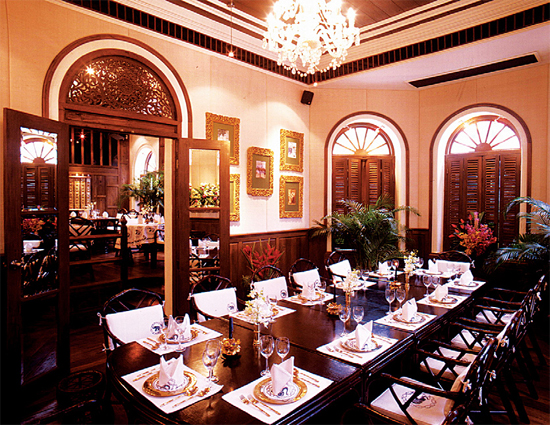 Following on from our ‘date’ at Sirocco, high above the bustle of Bangkok, Monsieur and I descended the sixty-something floors with ears popping in the express elevator and jumped in a cab to The Blue Elephant. Our driver looked more like a cutting edge DJ than a taxi driver (perhaps he was both?) with long black hair and some interesting man-bling. He didn’t really understand us. We definitely can’t speak Thai. Somehow, with some sign language and the restaurant’s business card, we finally made it to the two-storeyed colonial villa housing this international Thai food phenomenon.