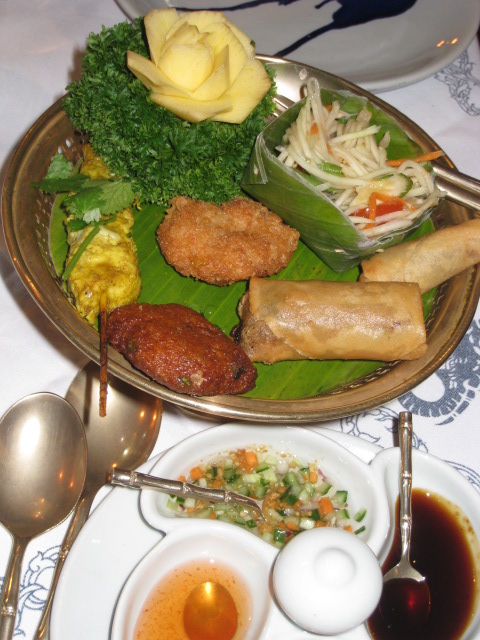 Tempted though I was to order the soft shell crab, I’d done just that in Bangkok so it was time for a change. What better way to try out the menu’s highlights that order their Thai Royal Banquet menu? Most of the gang chose the same, and the vegetarian among us had the vegetarian version: a 3 course taster menu (or 4 if you include a soup) taking you on a tiki-tour of Thai cuisine.