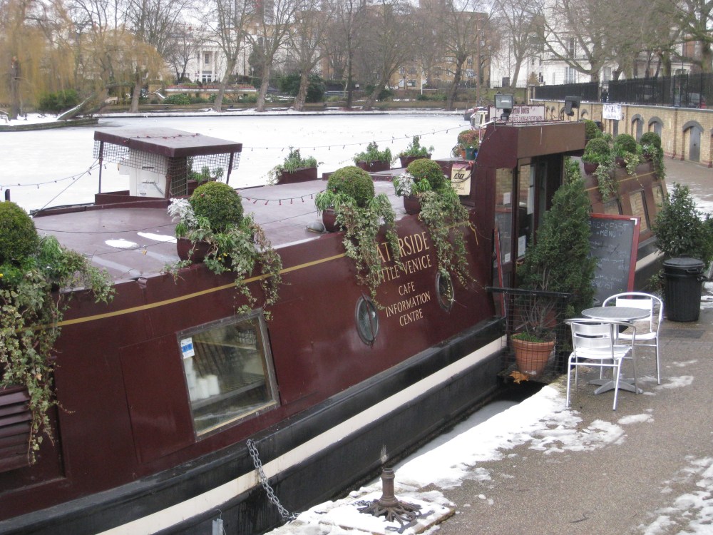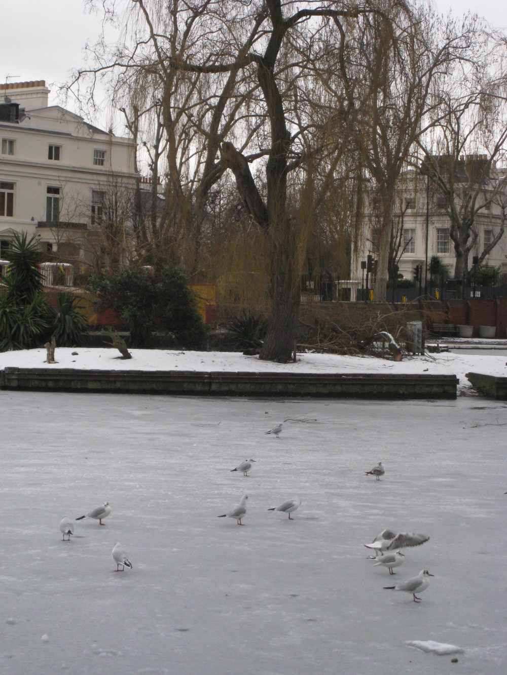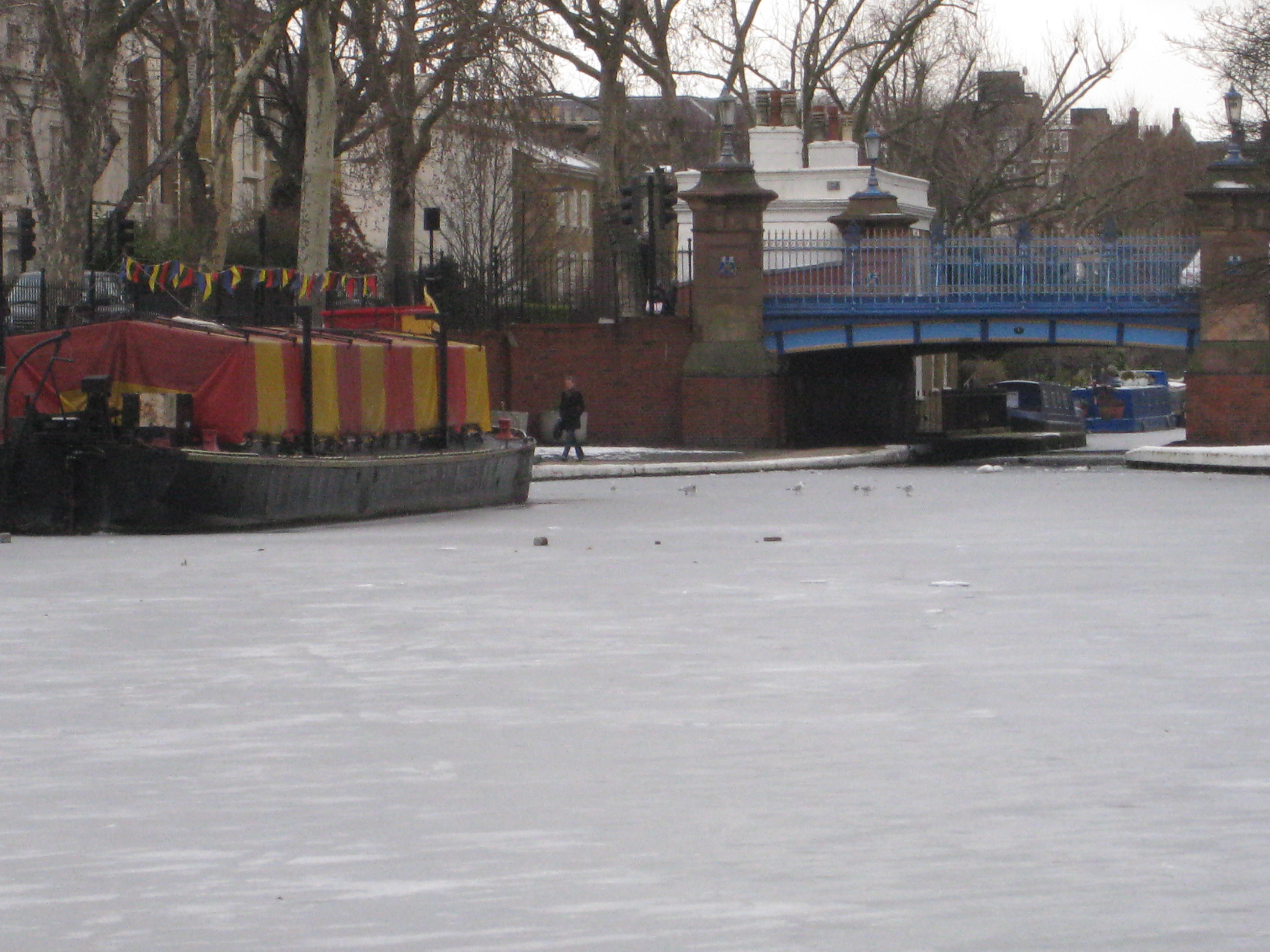Last Sunday I decided that something had to be done about my current addiction to (a) duvets, (b) blankets and (c) our gas fire. Donning as many layers as possible I took my camera to photograph the canals of Little Venice, which had frozen over.