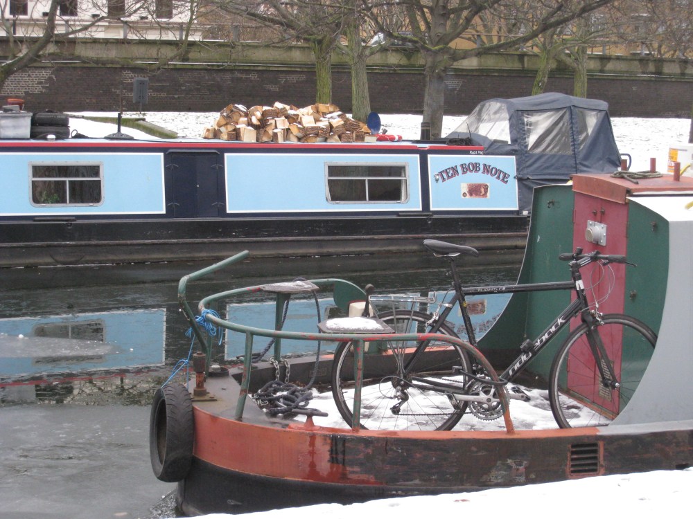 Around the corner, poor old Jason sat quite inert. In the warmer months of the year he keeps busy chugging tourists up to Camden Lock and back, but now the canals are frozen solid so there’ll be no chugging for Jason for a while.