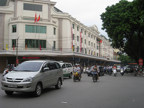 (More traffic in central Hanoi. Crossing the road takes some doing in this sort of traffic.)
