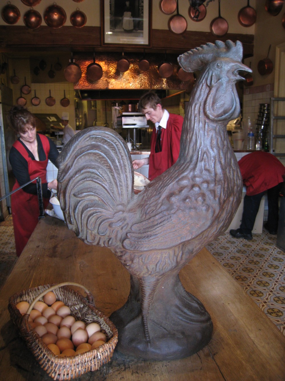 Monsieur had a 2 and I had a 3. I expected the omelette to have the smoked salmon whisked through it, forming part of the overall whole. Instead, the smoked salmon was served in a little bowl to the side of a gigantic, foaming hemisphere of omelette. The smoked salmon was far from the best, which one really should expect when dining in an omelette house so ancient that the walls were hung with dozens of pictures of politicians and actors chowing down on the world’s most expensive chicken eggs. At least the omelette looked sizeable,(not that I cared because in case you don’t remember me saying, I. DON’T. LIKE. OMELETTE.) but on cutting into it, air escaped, the formerly fat half-moon deflated and in spite of not being the number one fan of omelettes, even mine disappeared in a jiffy. So in essence, not only had we just paid €56.00 for 2 omelettes, they were so insubstantial that eating them took a mere 5 minutes. That’s €11.20 per munching minute per pair of omelettes. If that’s not extortion, I don’t know what is. Shame on you, La Mère Poulard. You make my mud bubble.