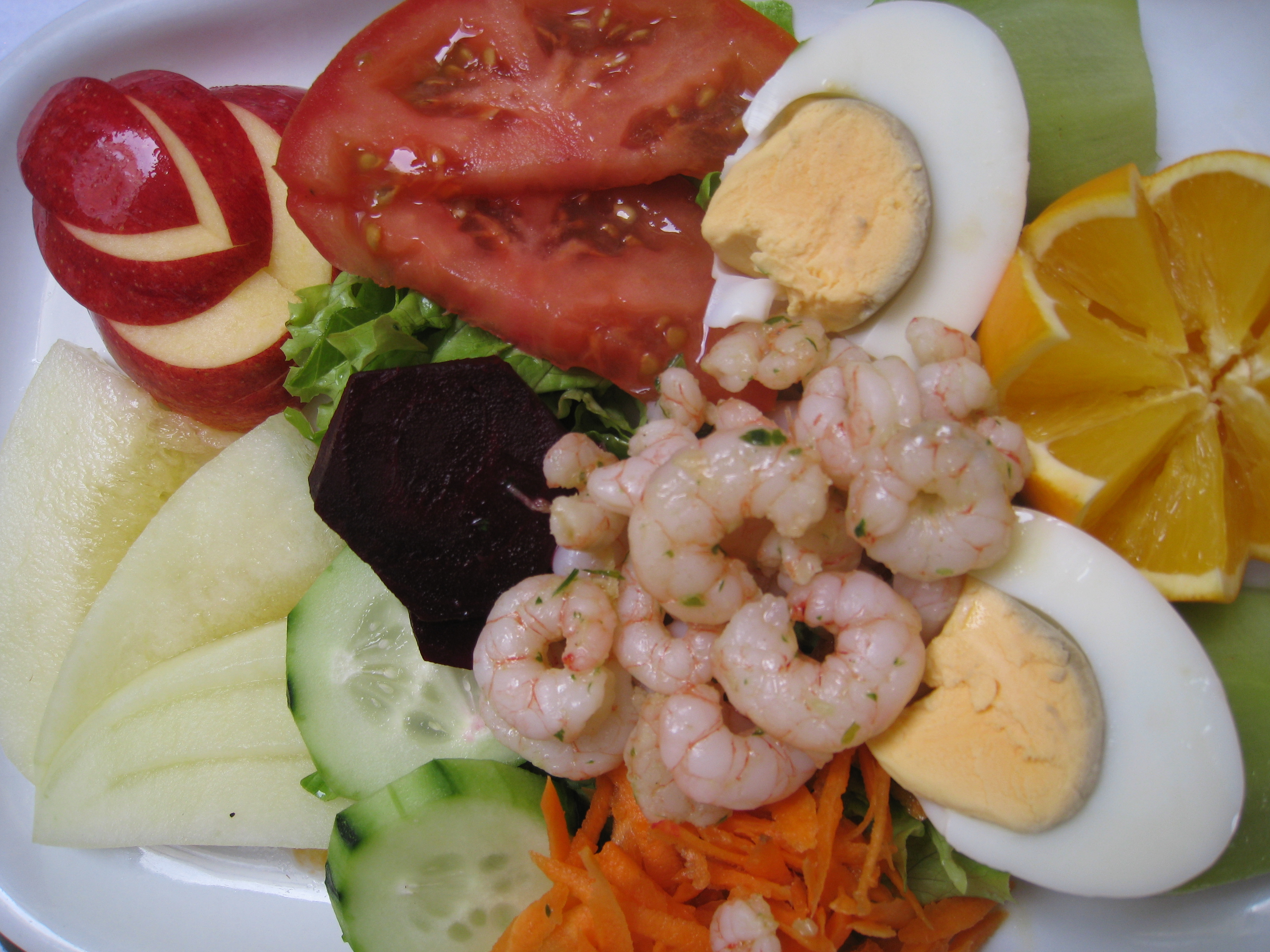 Monsieur started with a salad which arrived as a beautiful array of fresh produce: a tumble of frisée leaves topped with cucumber and beets, tomatoes and apple, two halves of a boiled egg, melon and kiwi. The grated carrot which had appeared in all Portuguese salads that we’d eaten thus far had not been forgotten. A dollop of prawns drizzled with lime juice sat at the centre and an orange carved like a starburst showed off the knife skills of the kitchen staff. It was certainly the most colourful salad we’d seen in a while. Monsieur demolished it all, exclaiming at the freshness, the crispness, the full flavours.