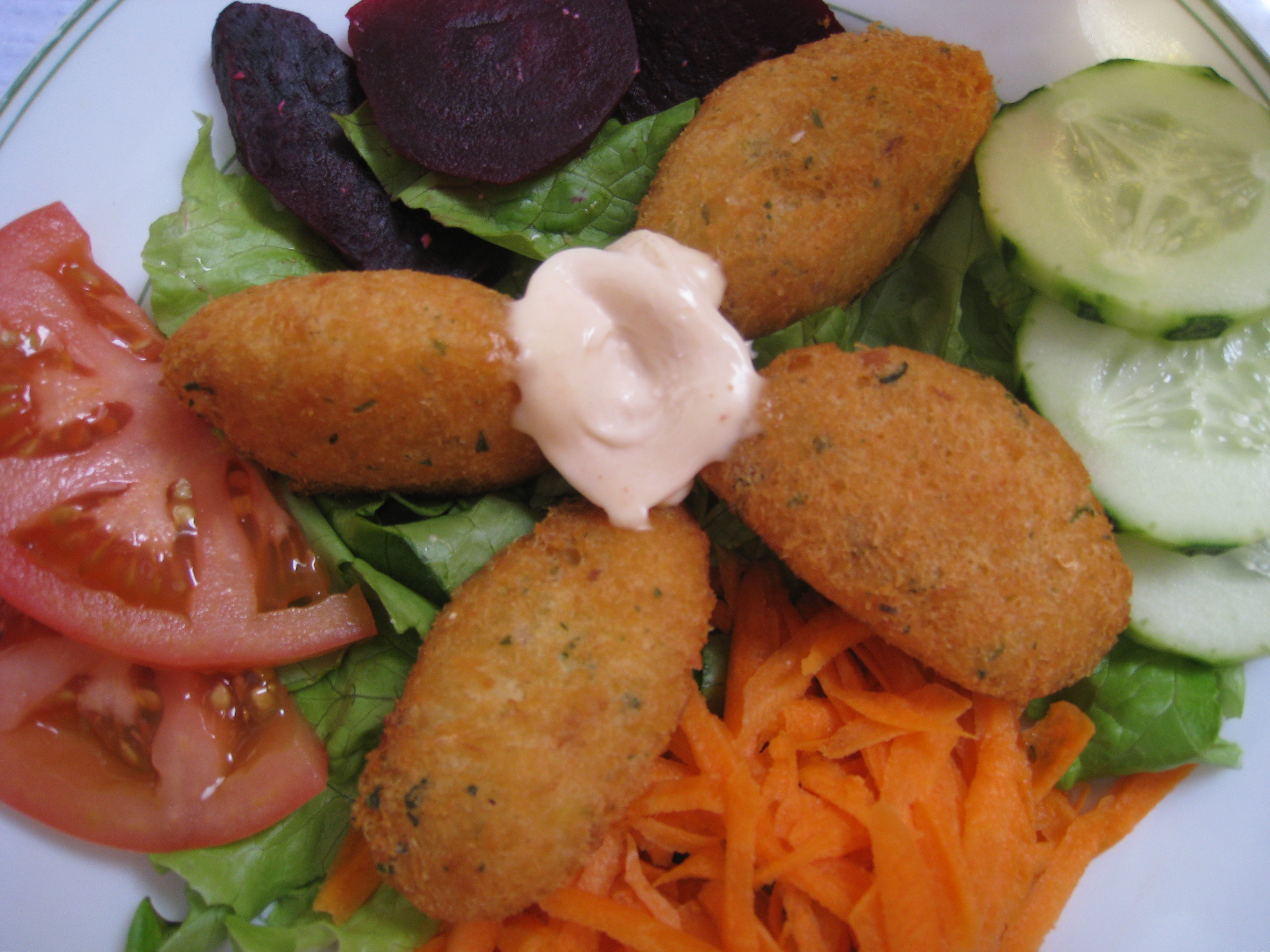My main course was a plate of salt cod croquettes – a staple of Portuguese cuisine – served with a touch of Thousand Island dressing and salad. These were far superior to the croquettes I’d tried in Lisbon, which were quite dry, stuck to the palate and cried out for a squeeze of lemon or some sort of sauce to soften them. The O Visconde version were marshmallowy and had kept some necessary moisture, and the Thousand Island dressing was a welcome addition, complementing the strong cod flavour. Even the tomatoes wowed me. They’d been unpretentiously tossed into the salad and were deep red in both colour and flavour, oozing juice in the best possible way. And yes, the salad included (drum roll) grated carrot.
