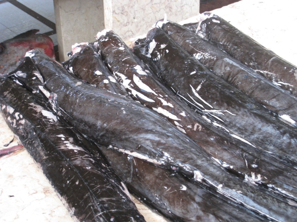 Known as Peixe Espada Preta, this is a popular fish in Portugal, known for a mild flavour which allows it to be prepared in hundreds of different ways. Their heads are the stuff of horror films, though: