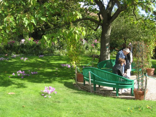 Monsieur and I arrived in the small village of Giverny on a dull autumn day, amidst a steady Norman drizzle. I’d always thought that May would be the optimum time to see Monet’s gardens, as they’d be in the prime of spring blossom and bloom, but apparently the little village is overrun with international fans of Impressionism in springtime, so by coming later in the year, we’d wisely sidestepped the push and shove of tourist hordes. Would the effort be worth it? Would we see any flowers? Or would we curse our autumn plans and wish we’d come in spring or summer, with the world, his wife and their dog?