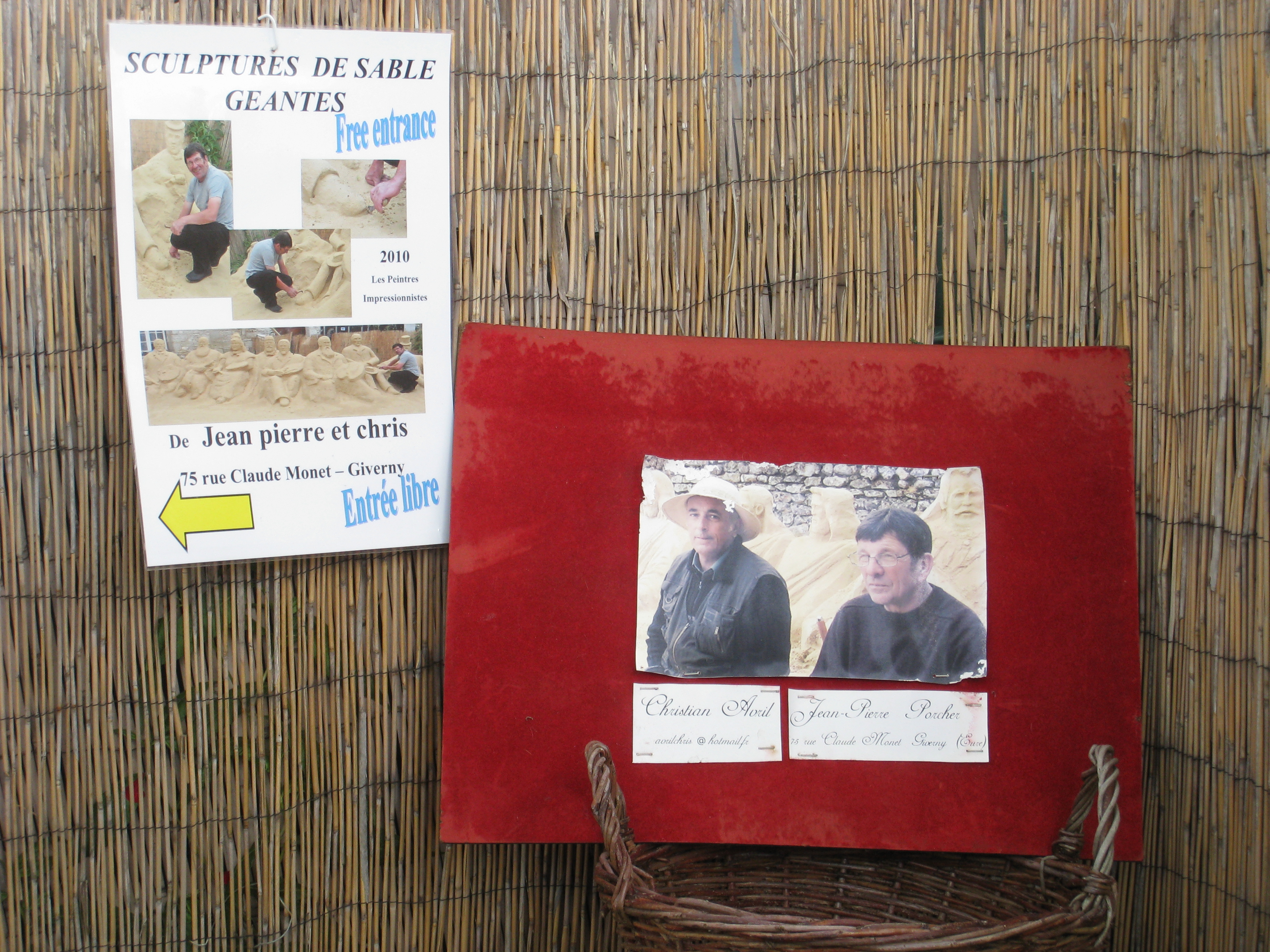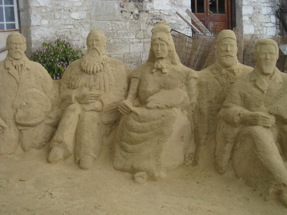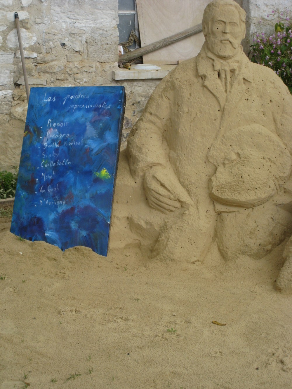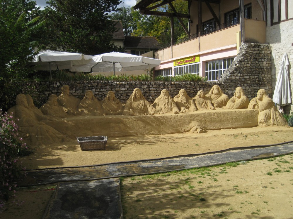 Even so, there are some talented folk out there who both possess the patience for sculpting sand and artistic skill. Two such folk create masterpieces of sand far from any beach in Giverny, the village where pilgrims paying homage to the late, great Claude Monet flock in their hundreds of thousands each year. They are Chris Avril and Jean-Pierre Porchez, whose compositions exhibit talent, perseverance and poise. To stumble upon their sculptures is a pleasant surprise in a place like Giverny, where there are altogether too many mediocre art works hanging in galleries designed to lure the tourist.