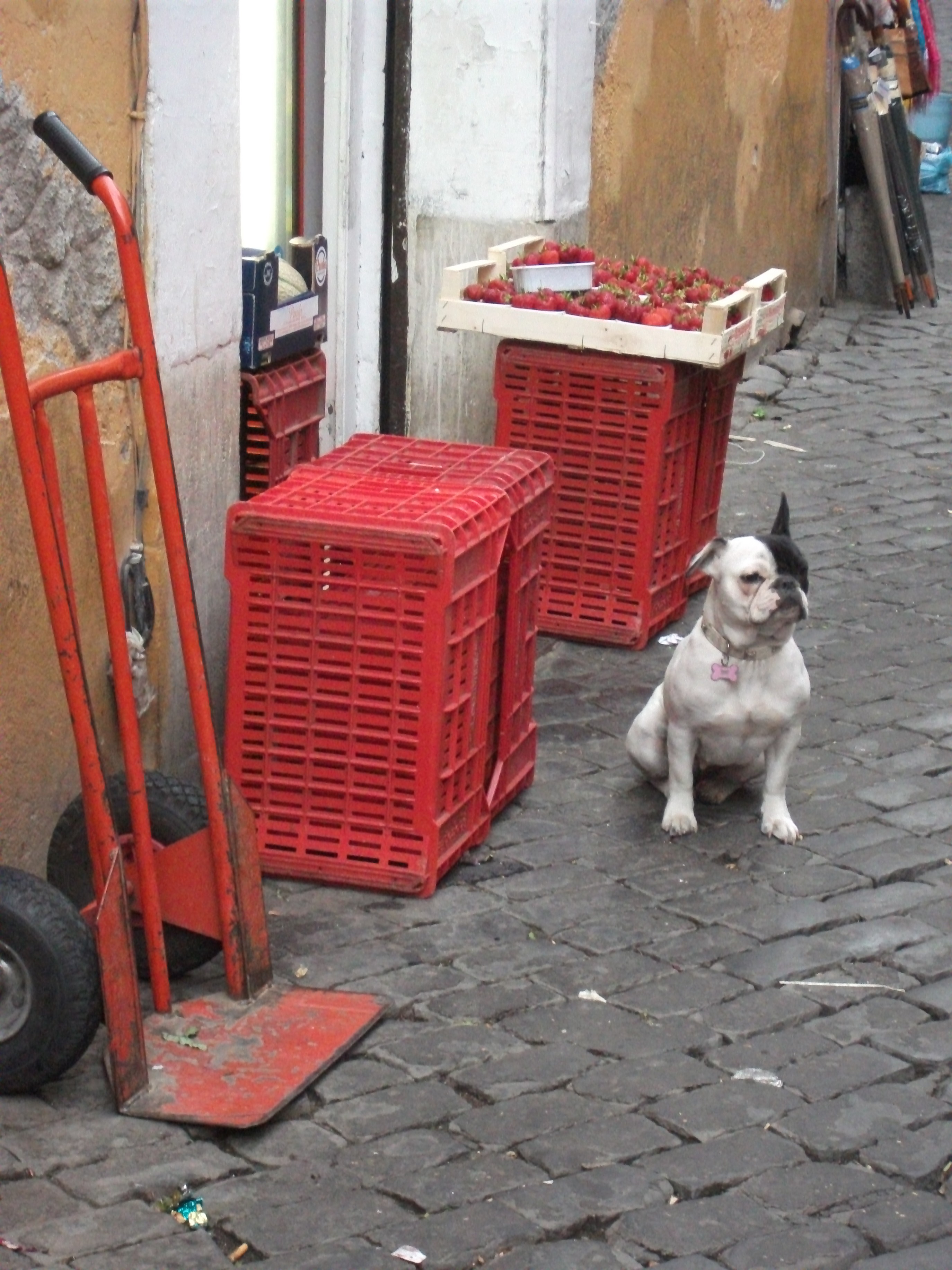 And this canine darling, with diamante-studded collar, sat proudly guarding HER grocery shop. “Hello, dog!” I said by way of greeting, only to be snubbed as one wet nose sniffed the air with a marked disinterest in human interlopers. “Darling, the dogs here don’t speak English. They’re Italian,” Monsieur laughed.