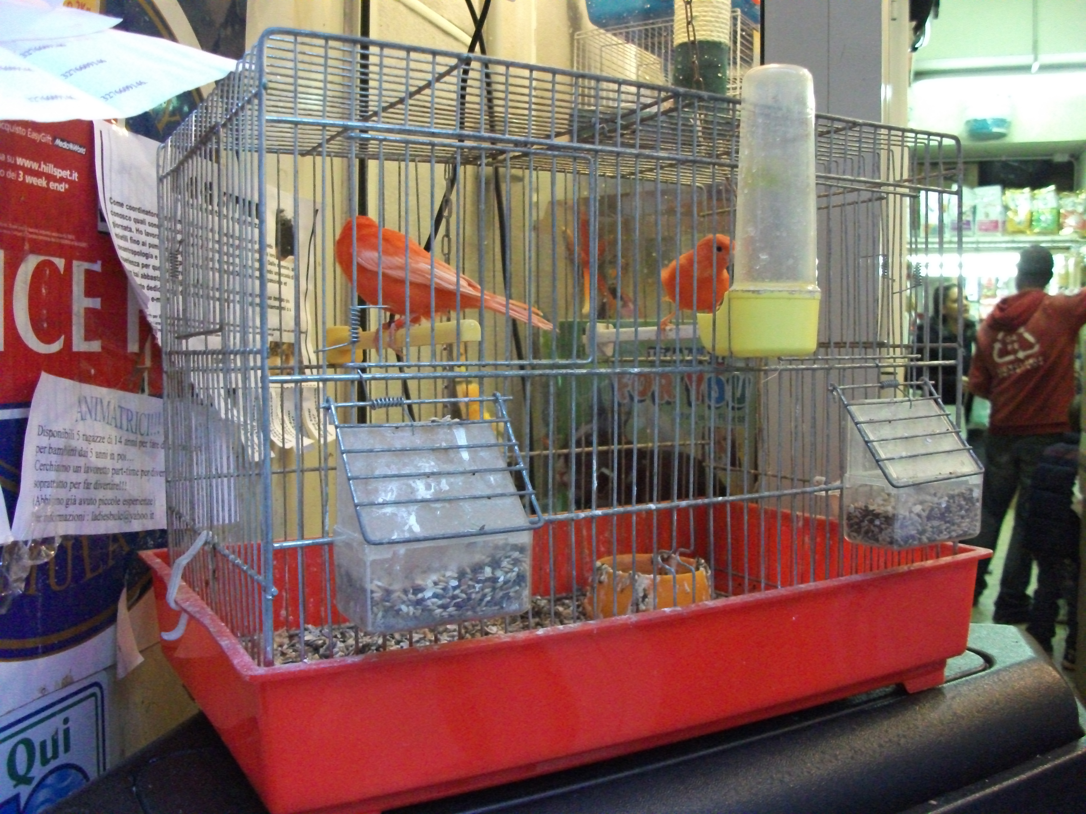 Elsewhere, canaries sang prettily outside a local pet shop, hopping in a relay of two from perch to perch: