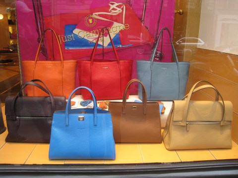 A windowful of beautiful handbags that had me drooling on a recent visit to Paris. If I had a spare €3,000.00 I’d buy six. Oui, I have impeccable taste. They retail at €500 – €600 a piece. Alas, I have Champagne taste and Cava pockets.