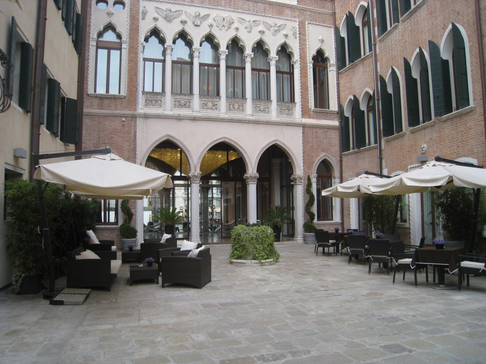 The easiest way to find the Centurion Palace: Take a vaporetto to the Salute stop. Get off and turn right immediately, heading away from the church. You’ll pass through an arch. A zigzag later will find the Centurion’s gate on your right hand side (Grand Canal side). Alternatively, if you’re made of moola, just whistle for a water taxi and they’ll drop you right next to the terrace I’ve been lauding above.