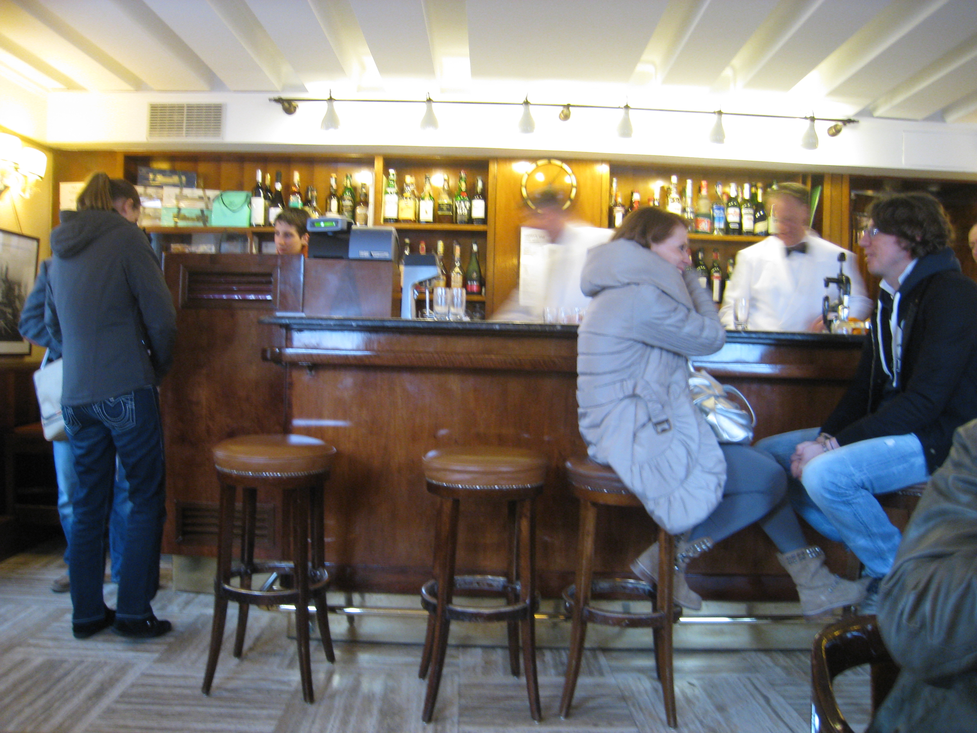 We’d arrived just after 4 in the afternoon, so luckily beat the traffic. A few minutes later and there wouldn’t have been room for us, such was the steady stream of tourists pouring through the door, mouths agape as they drank in the first impressions of the place. Given all the fuss about Harry’s Bar, it really is quite unexpectedly simple in design. Perhaps we expected lashings of gilt and brocade where Charlie Chaplin and Aristotle Onassis once sipped their evening refreshments? Venice certainly does excel at fussy. And yet, when you sit back and start to absorb the atmosphere, it’s obvious that this is an establishment that’s secure in itself and has confidence enough not to seek to impress like a Flash Harry on the make. Even better, for fans of 1930s interiors and traditional service, it’s like walking into a charming time warp.