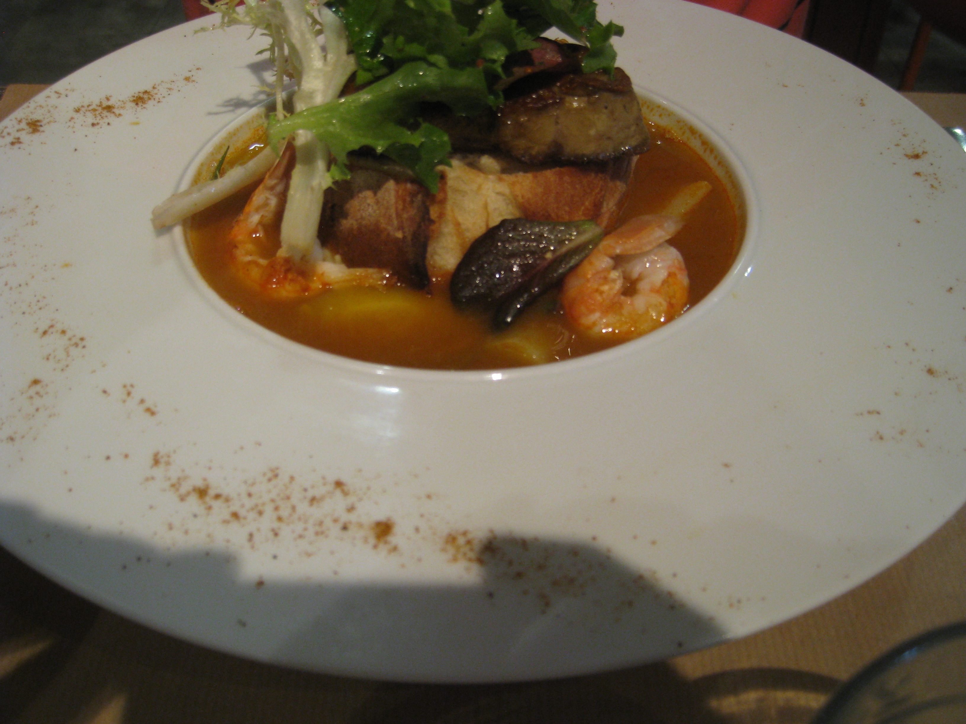 Pity poor Monsieur across from me, though. He’s ordered the riz de veau. Offal of various shapes and forms hits his side of the table, most of it far from his taste. For the more expensive menu, I’m shocked: minestrone and offal are certainly cheap dishes to make, so the restaurant must be making a killing on the profit. I’ve ordered a seafood platter and delicious fish, yet my meal is a whole €10.00 cheaper. Surely, the management has mixed up the prices?
