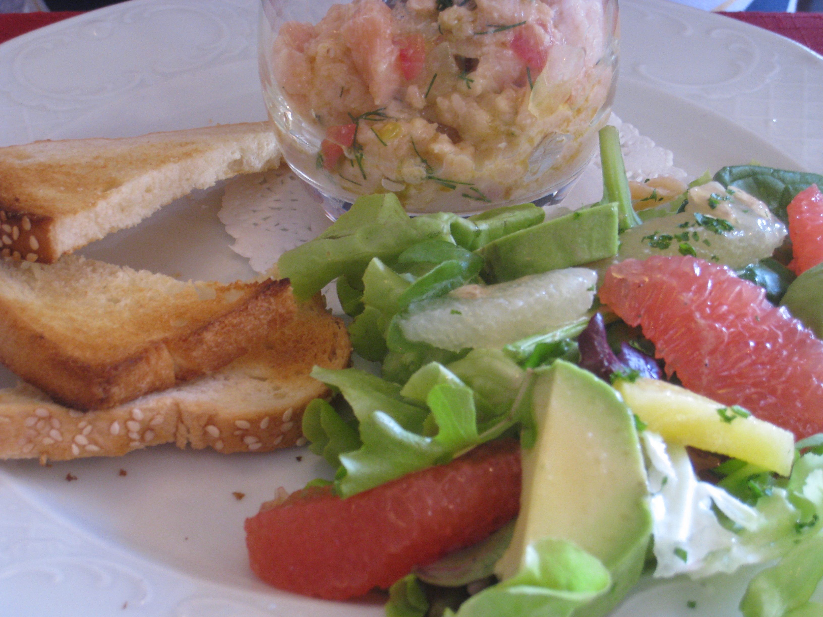 The accompanying Creole salad was luscious with wedges of grapefruit and avocado chunks tumbled onto the plate. Somewhere, a Caribbean cove was calling and Monsieur was answering with sounds of olfactory satisfaction.