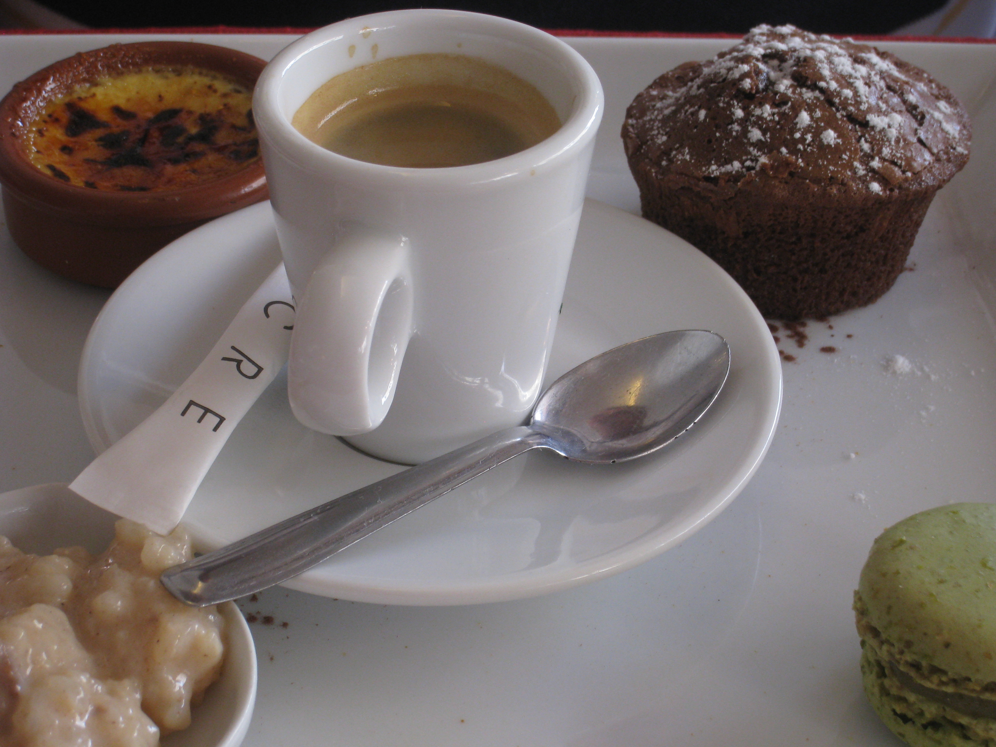 The Café Gourmand is a French institution of the sweet variety, consisting of an espresso surrounded by mini dessert treats. In this case, the coffee came with a pistachio macaron, a teensy crème brulée with a hit of tart green apple (most appropriate in these orchard-riddled parts), a miniature chocolate fondant pudding and a small dish of the Norman rice pudding known as teurgoule. Monsieur isn’t a huge fan of rice pudding, but everything else received his hard-won praise.