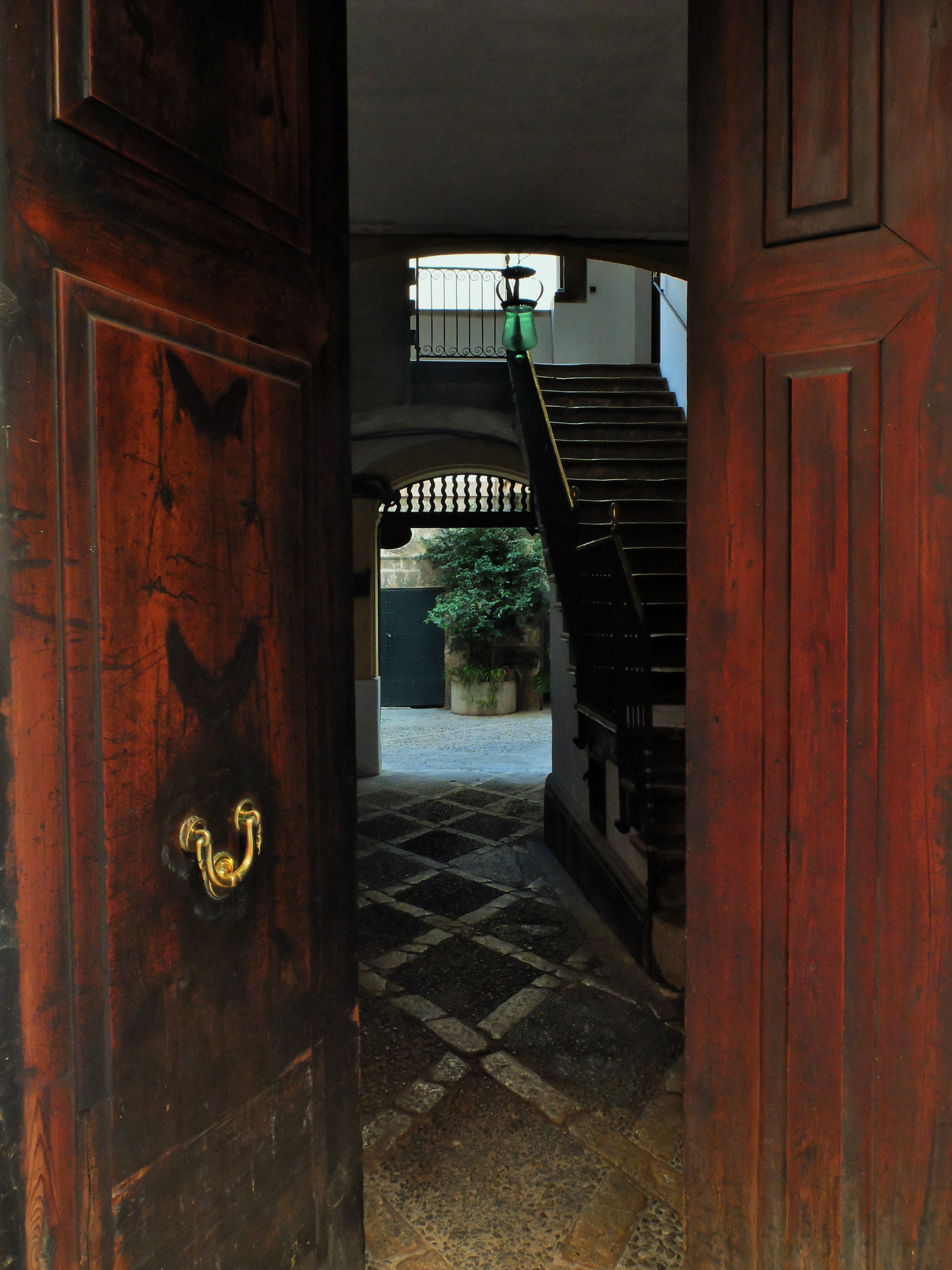 Off the Carrer d’En Morei, a narrow street running away from the back of the Catedral towards the Plaça de Santa Eulàlia, we peeked into inner courtyards – this one belonging to a hotel but others the sanctuary of local folk.