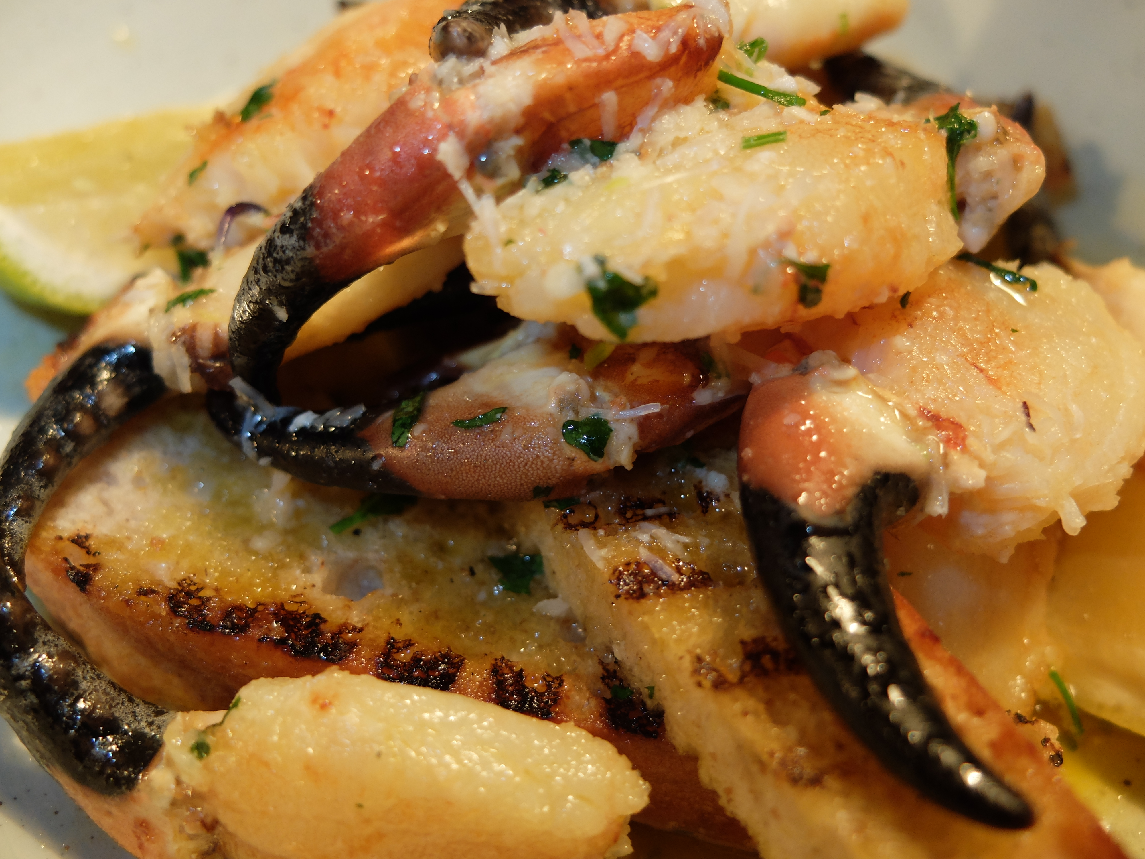 Next on the menu were Liscannor Bay crab claws, bearing all the characteristics of those you might find at a Floridian clam bake: big, fat, succulent, with almost tropical colouring. They sat upon a cushion of bread slices, drenched in garlic butter. Dare I say that the sopping, warm bread was just about as good as the claws? In this eating game I find myself avoiding bread much of the time, to save both capacity and calories, but this is not the place to exercise such wisdom. Eat. The. Bread. You won’t regret it.