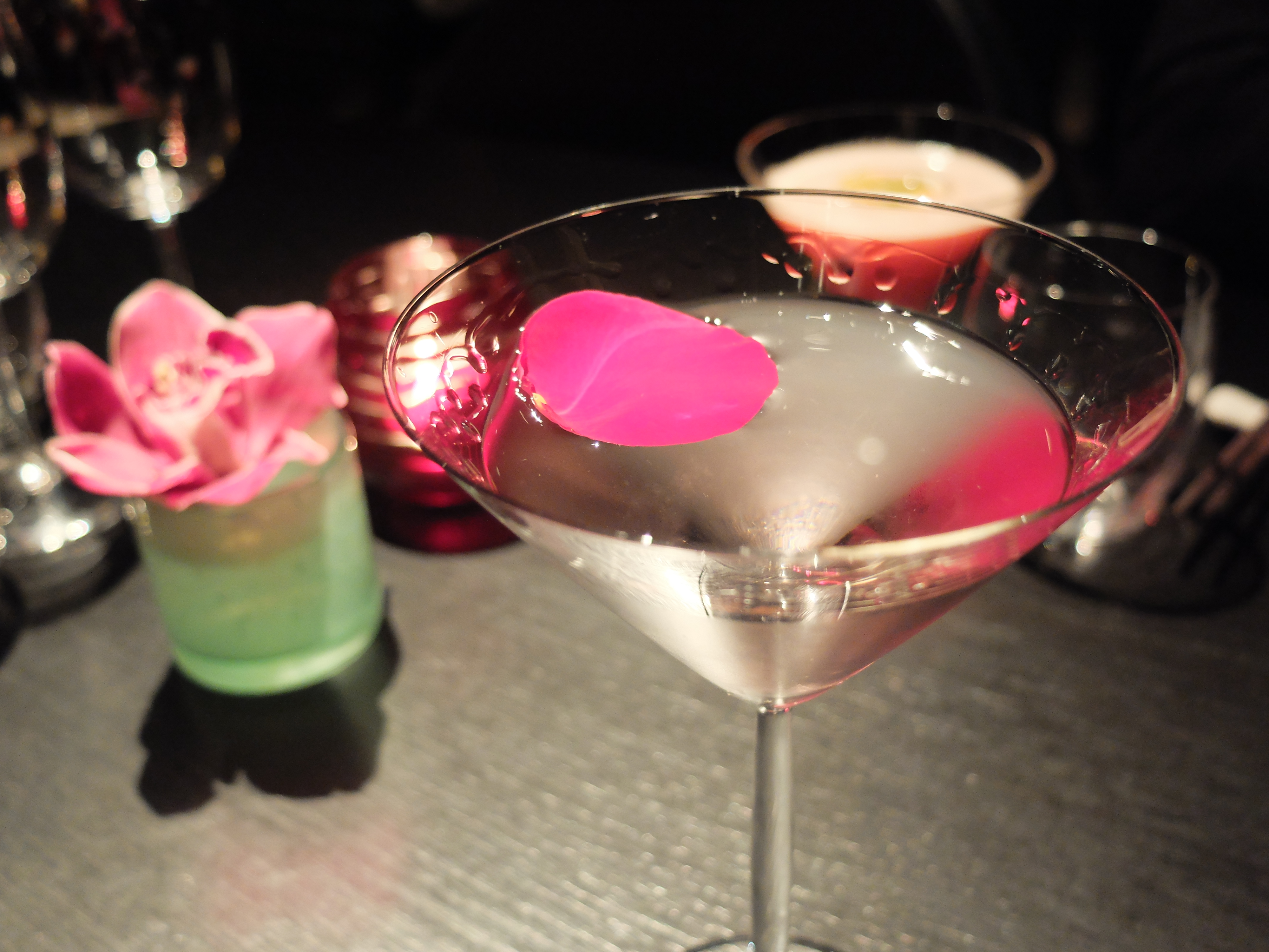 Next (yes, I was naughty enough to indulge in a second cocktail) was the Rose Petal Martini. Adorned with a single dark pink petal, this one was a step into a rose garden, heady with scent. The martini tasted as a rose might smell, yet with kicks of Hendrick’s gin, lychee liqueur, parfait amour and peach bitters attached. The rose syrup content was obvious, but the petal floating atop was a decorative reminder of the key flavour to be enjoyed here. An absolute winner cocktail.